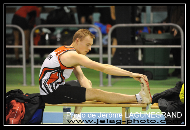 Terribles crampes pour Vincent LESCHENESAL arrétant sont concours à 4,20 m au saut à la perche.