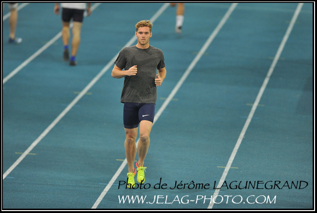 Echauffement pour le 60 m avec Kevin MEYER.