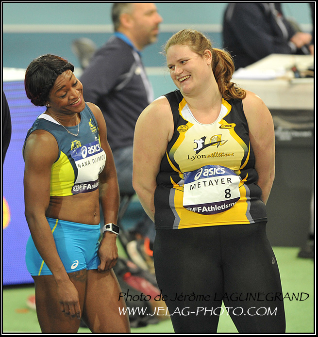 toujour très décontratée avant ses concours de lancer du poids avec Caroline METAYER (5eme)