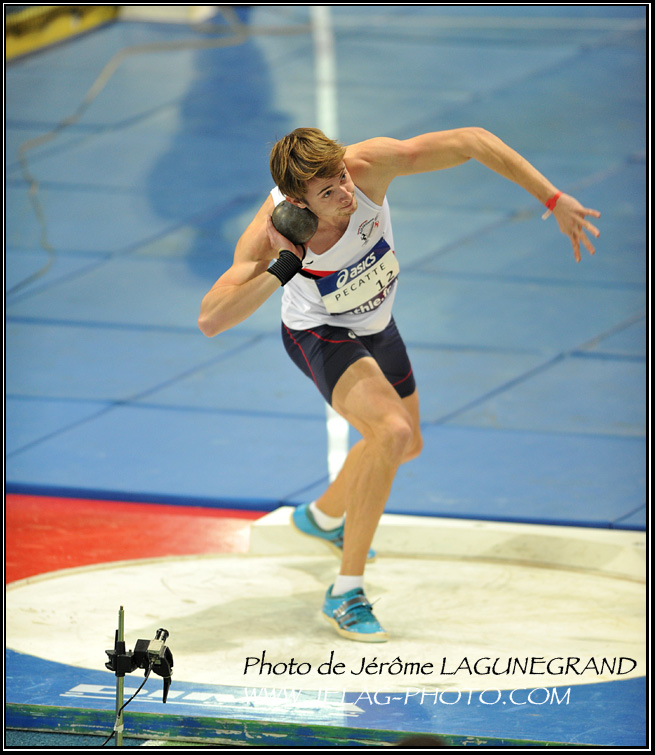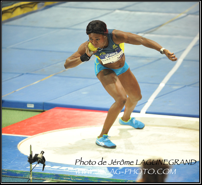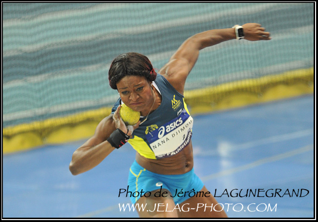 En action au lancer du poids.