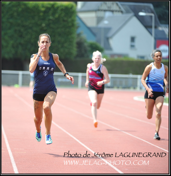 Petit geste de sympathie à la fin d'une course de 200 m avec la satisfaction d'avoir tout donner pour un record personnel.