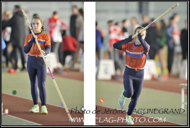 Première expériience au saut à la perche en benjamine... Déjà un style !