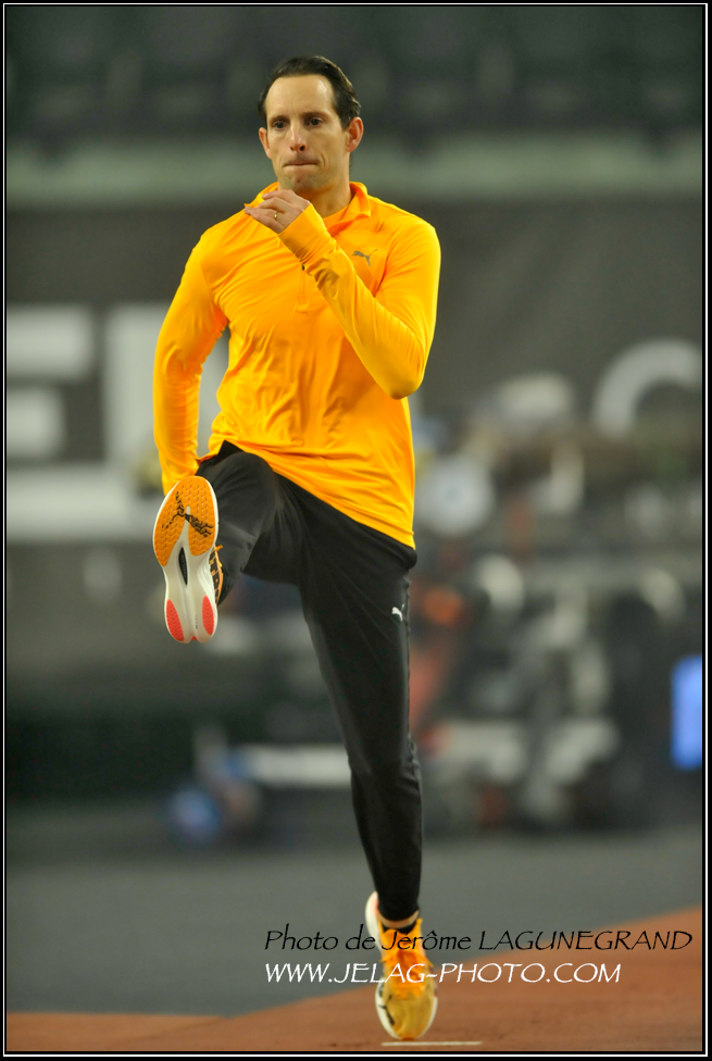 Renaud LAVILLENIE à l'échauffement.